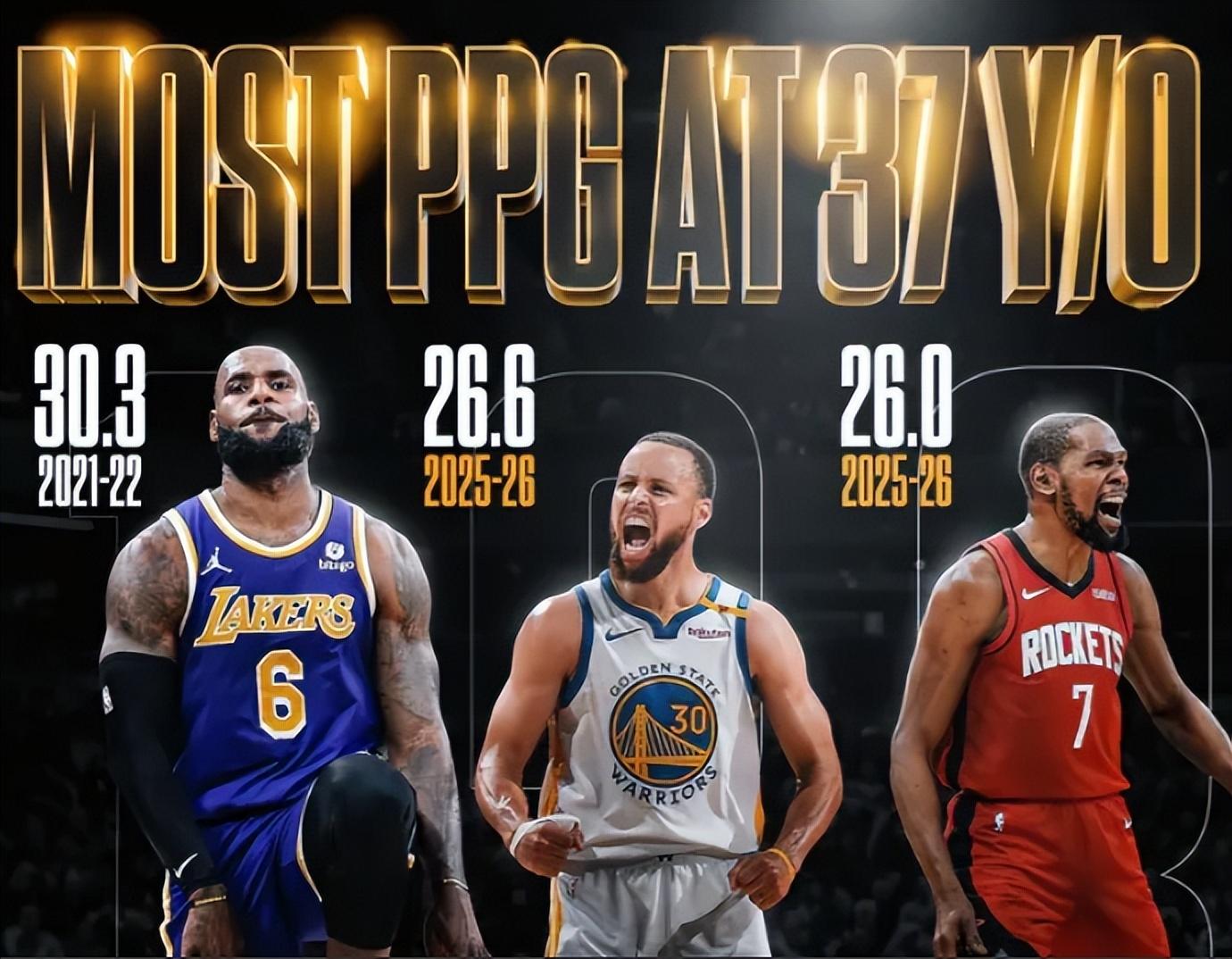 美媒BF曬出37歲三位超巨的場均數據也能說明勒布朗有多強,21-22賽季的勒布朗場均30.3分,25-26賽季的庫裏26.6分、杜蘭特26分,所以37歲的勒布朗依舊是最恐怖的存在。