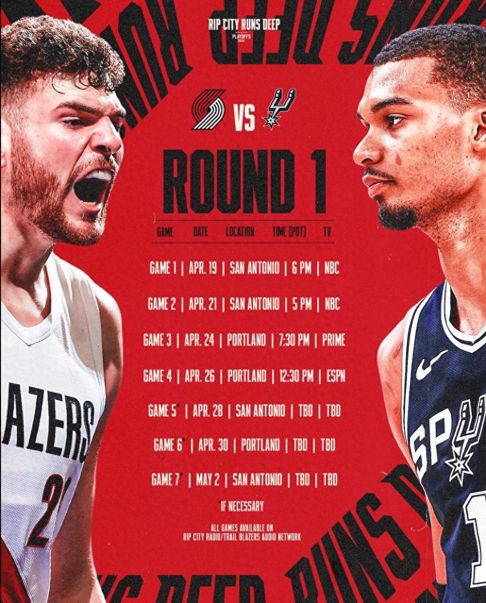 在開拓者以下克上擊敗太陽後鎖定了西部第七的席位,那麼開拓者VS馬刺的賽程就已經出爐,4月19日G1打響,如果這輪系列賽能打到搶七會在5月7日打響。克林根與文班亞馬都是身高在2.2米以上的超級巨獸。