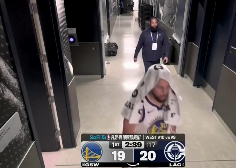 末節開場前庫裏又回到更衣室了,很快庫裏回來坐在場邊看到球隊又落後10分以上他已經沮喪搖頭,庫裏登場就命中三分再度爲勇士續命,庫裏助攻波神三分命中,只可惜快船暫停後又拉開到9分,霍福德四個三分幫助勇士反超,庫裏再中一個三分打停快船,快船發球失誤,倫納德繼續失誤比賽完結。