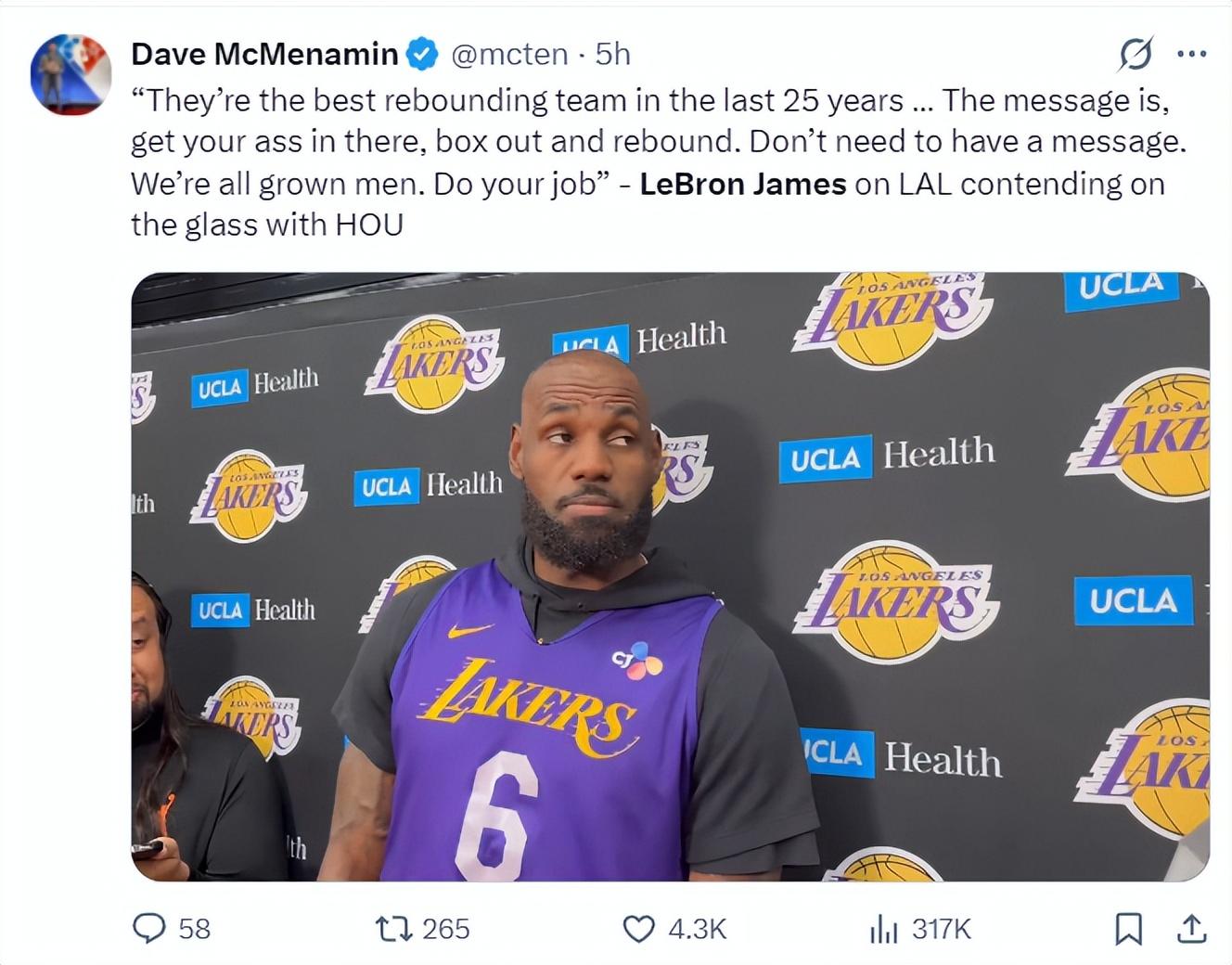 這個言論出爐很明顯是爲了影響勒布朗備戰季後賽,湖人VS火箭的首輪即將開打,加上裏夫斯、東契奇在首輪大概率要報銷,41歲的勒布朗是湖人唯一的依仗,文胖想要亂其心智。