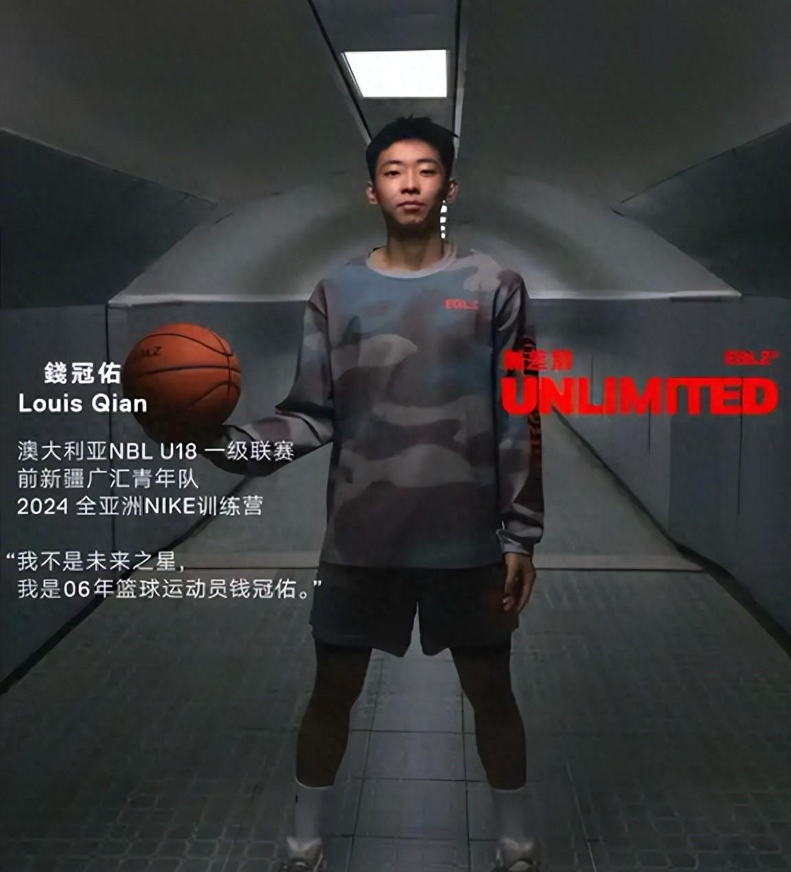 錢冠佑,新疆青年隊出身,曾在澳大利亞NBL U18一級聯賽打球,今年20歲,是街球圈近來炙手可熱的超級新星,他更是直言要衝擊NBA。