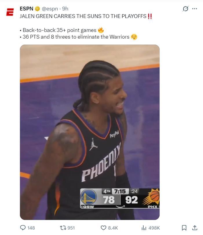 ESPN都說是杰倫-格林帶領太陽隊進入季後賽。