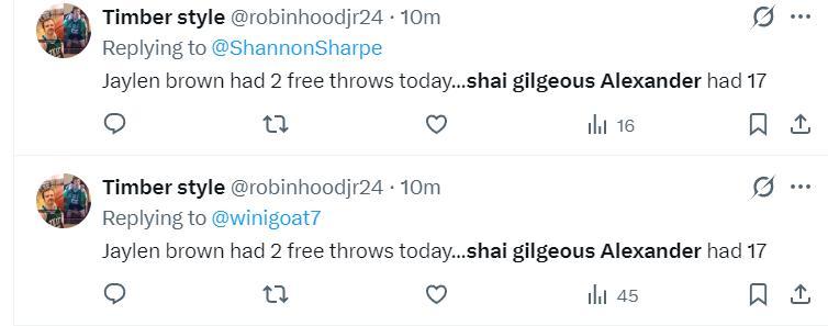 但更多的球迷都會說,這個比賽日杰倫-布朗2個罰球拿到26分,SGA17個罰球拿到25分。(SGA罰球拿15分佔比25分的60%,一分王當之無愧)