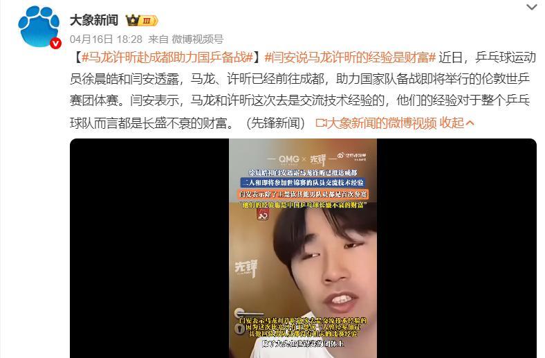 閆安在直播間談到馬龍、許昕前往成都,他們就是爲了助力國乒即將舉行的倫敦世乒賽,馬龍與許昕就是去交流技術經驗,他們的經驗是整個國乒長盛不衰的財富。