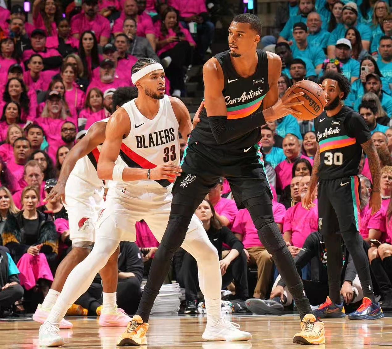 北京時間4月20日,NBA季後賽首輪G1,馬刺主場擊退開拓者,大比分1-0領先。這場比賽文班亞馬的個人表現無懈可擊,但馬刺隊的整體硬實力也的確壓開拓者一頭,文班亞馬就算下場馬刺也可以大比分領先,文班亞馬全場比賽35+5三分,他成爲馬刺隊史首秀最高分,超鄧肯的32分。