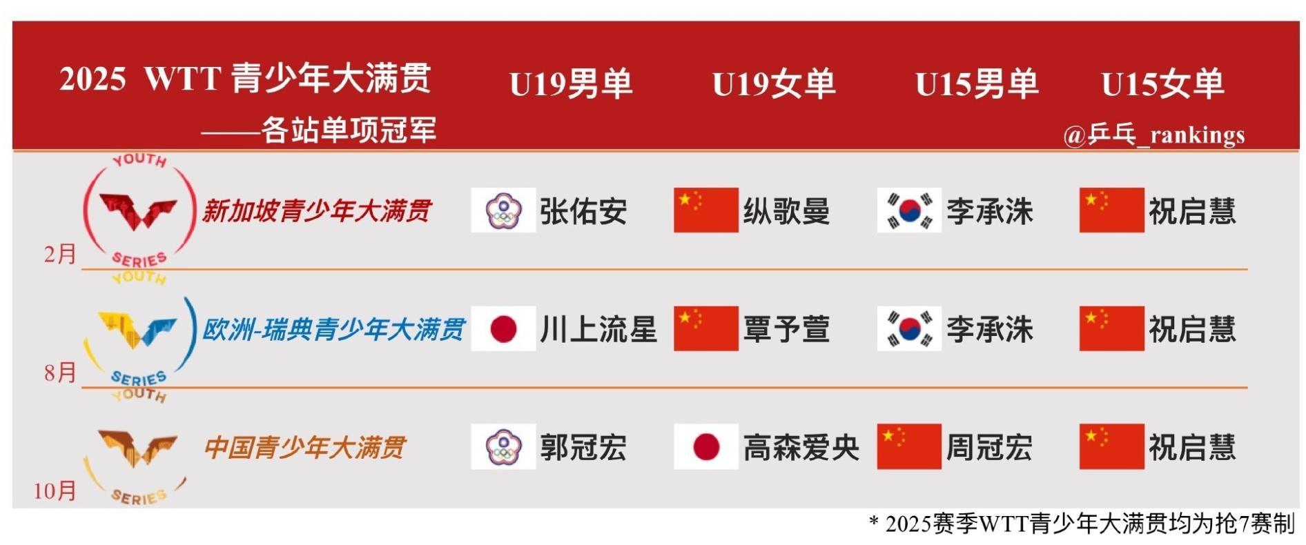 祝啓慧出了在去年的大滿貫蟬聯三連冠,她還是十五運18歲以下青年組女團冠軍,在2025年世青賽U15女團項目中她也拿到銅牌,她搭檔于海洋在世青賽U15混雙項目拿到亞軍。