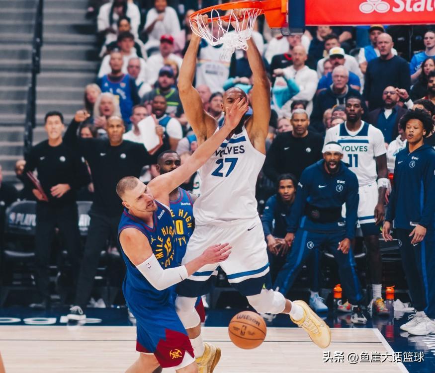 約基奇在這場比賽中得到了24分15籃板8助攻的準三雙數據,反觀戈貝爾在這場比賽中進攻貢獻很有限不說,同時戈貝爾還一度遭遇犯規麻煩,只不過在第四節比賽戈貝爾登場後更是絲毫不懼約基奇,而且在第四節比賽約基奇面對戈貝爾的防守更是頻頻打鐵,也正是戈貝爾這一段時間的防守硬是幫助森林狼完成反超,更重要的是後續戈貝爾更是面對約基奇完成了暴扣,所以戈貝爾這場比賽的發揮對於森林狼來說很重要。而在前三節比賽中約基奇13中7得到22分,末節7中1僅拿2分,其中面對戈貝爾5中1、連續四回合被防下,可以說在最後一節比賽中戈貝爾也證明了自己當初爲何多次當選DPOY。
