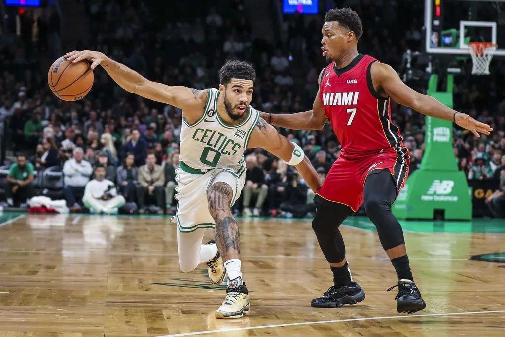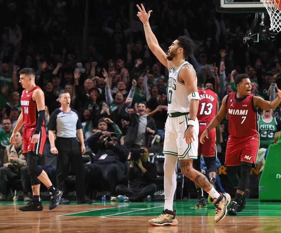 有了塔圖姆巨星表現的加持,凱爾特人全隊轟下了134分的高分,投籃命中率高達55.4%,並且以48.9%的命中率投中了22記三分。他的搭檔杰倫·布朗也以55.5%的高命中率貢獻了26分7籃板5助攻。然而,作爲上賽季的東決對手,頑強的熱火自然沒那麼快低頭認輸。他們頂住凱爾特人的“三分雨”,一點一點地回應凱爾特人,斯特魯斯手感火熱單節4記三分球,文森特也錦上添花,本節還有1分45秒時熱火隊以94-95落後。德里克·懷特扣籃得手,布羅格登又是一記三分,三節結束時凱爾特人隊以102-96領先。