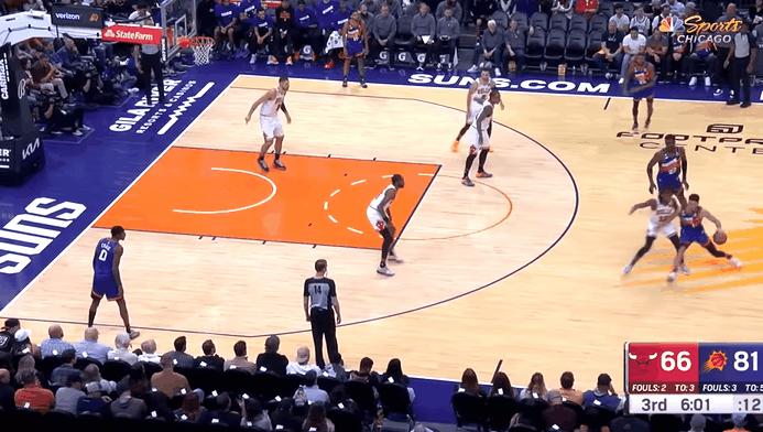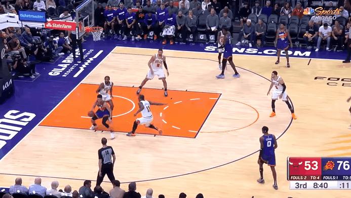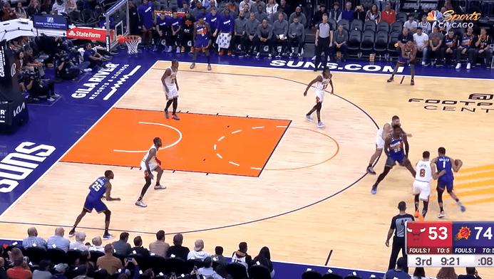 布克的鋒芒無人可擋,一人命中5記三分獨砍26分。急停三分、背身後仰跳投、突破拉桿上籃,布克整個人宛如一把鋒利無比的寶劍,所到之處無所不破,以一人之力將公牛的防守斬得七零八落。