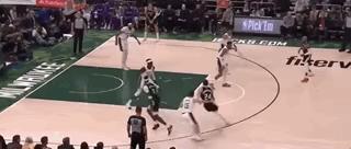 再比如這回合,裏夫斯給濃眉作掩護,濃眉隨後又給威少做擋拆,又是一次標準的濃眉擋拆喫餅教學。