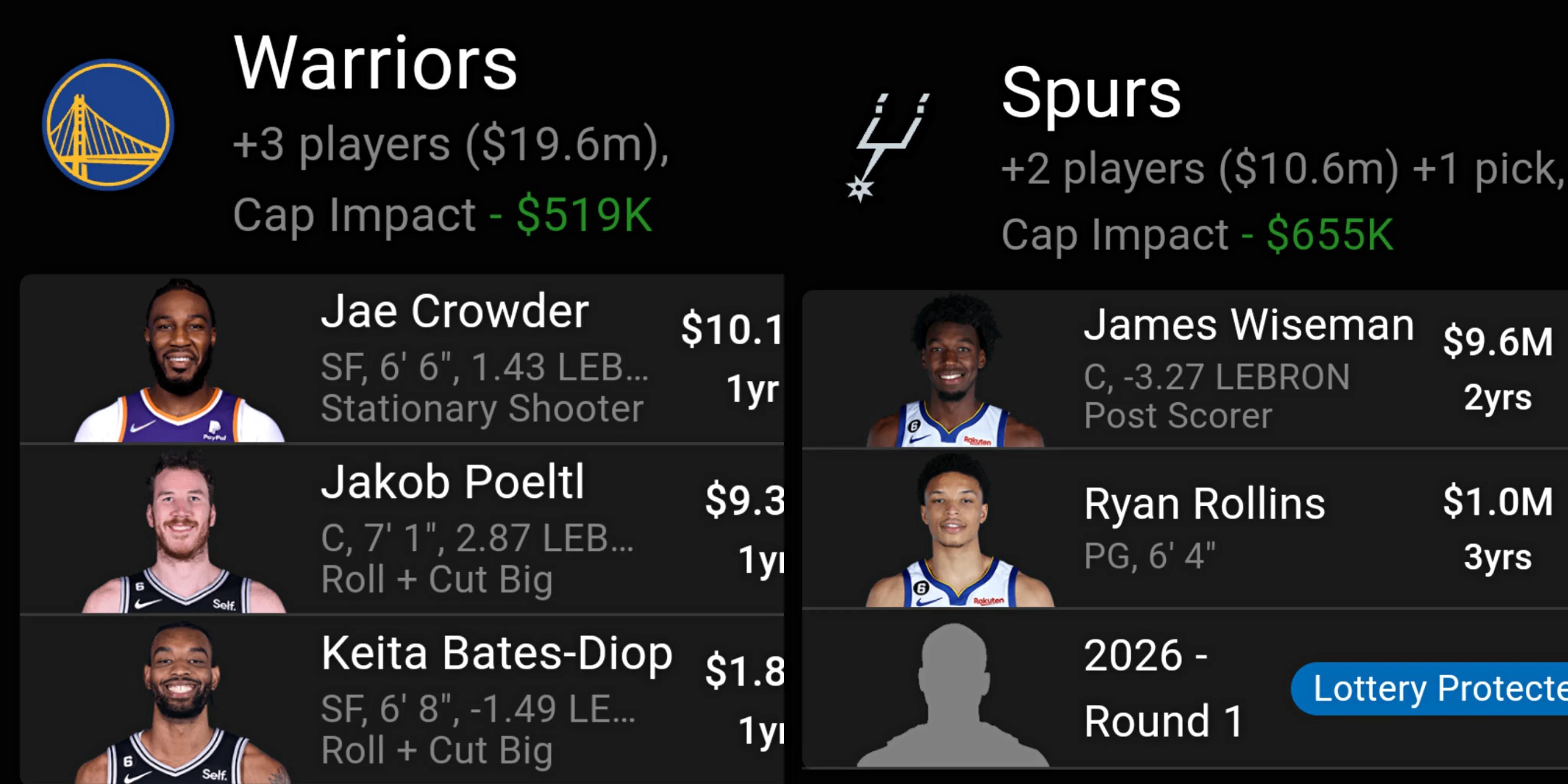 馬刺和活塞都是是重建的球隊,馬刺得到懷斯曼和羅林斯兩位年輕球員,活塞得到庫明加和穆迪,這些球員在勇士並沒有得到太多表現機會,加盟新球隊有望迎來變化,也更符合重建球隊的長遠計劃目標。
