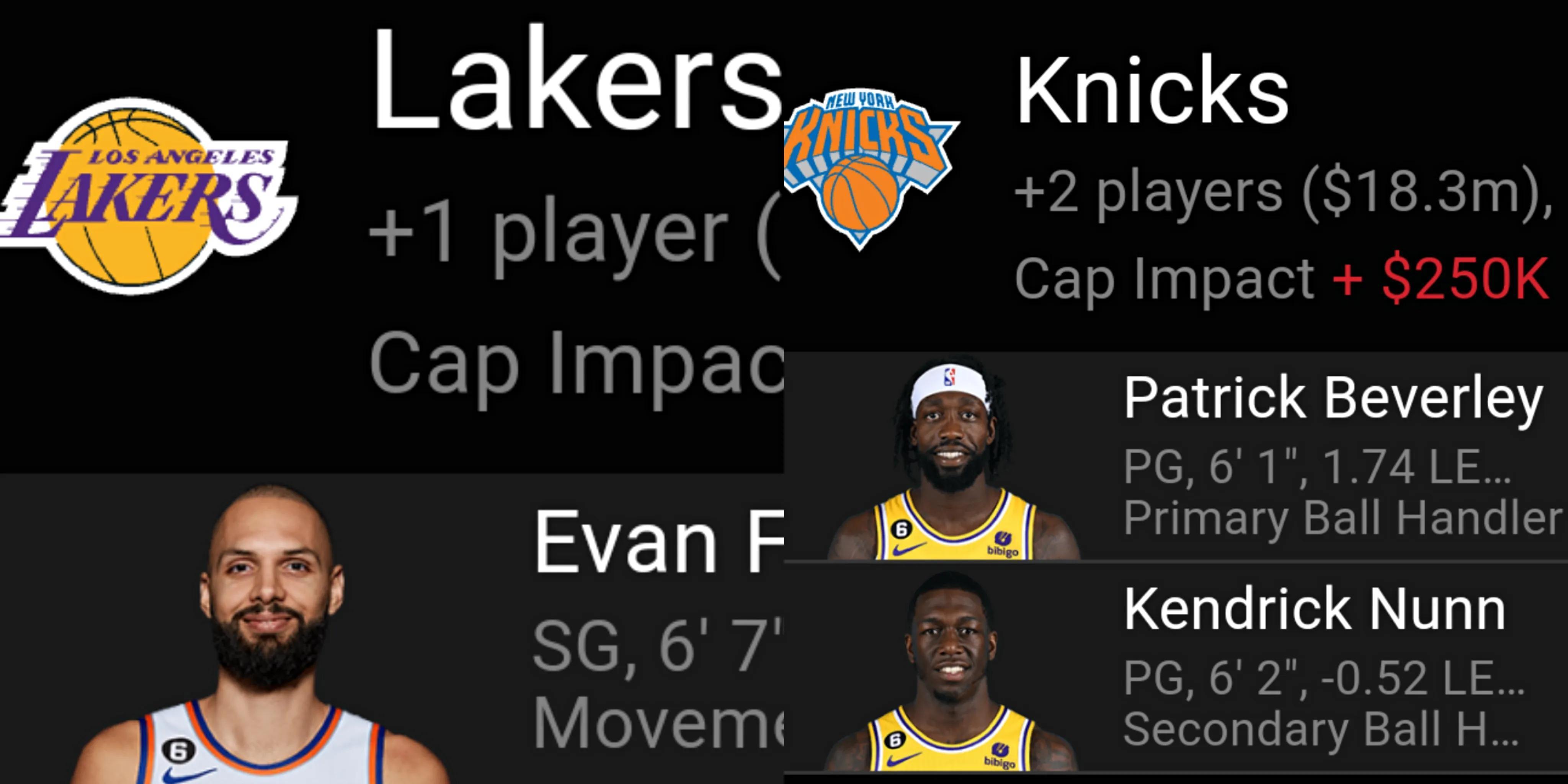 湖人送出貝弗利和納恩,得到尼克斯隊的富尼耶,這是一筆雙方都能接受的方案,貝弗利和納恩都是到期合同,尼克斯通過這筆交易處理了富尼耶的大合同,提前清理了薪資空間,湖人則得到了一位外線三分射手,富尼耶職業生涯三分命中率達到百分之37.9。