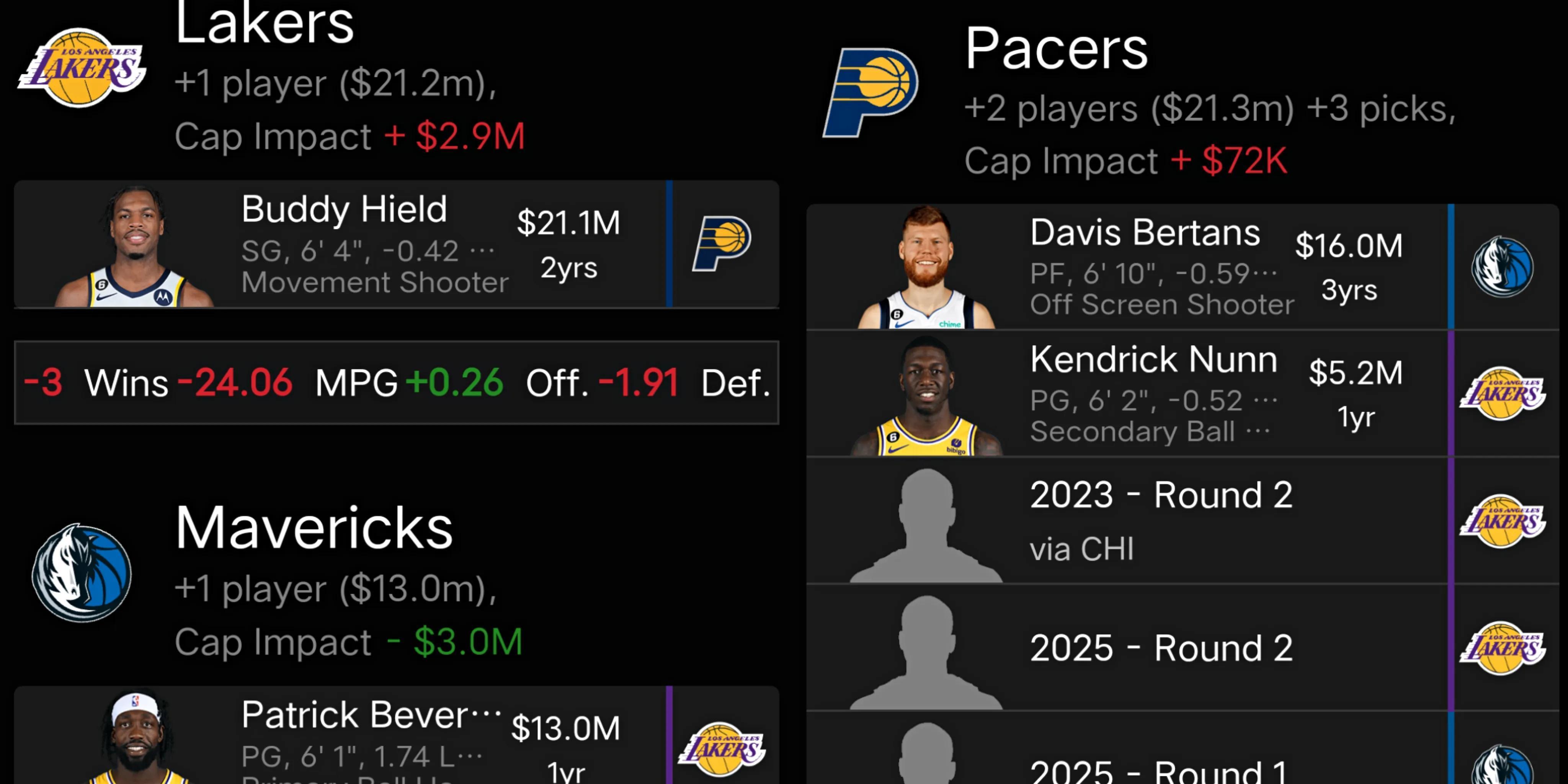 得到:貝爾坦斯、納恩、2025年獨行俠首輪籤、2個湖人次輪籤