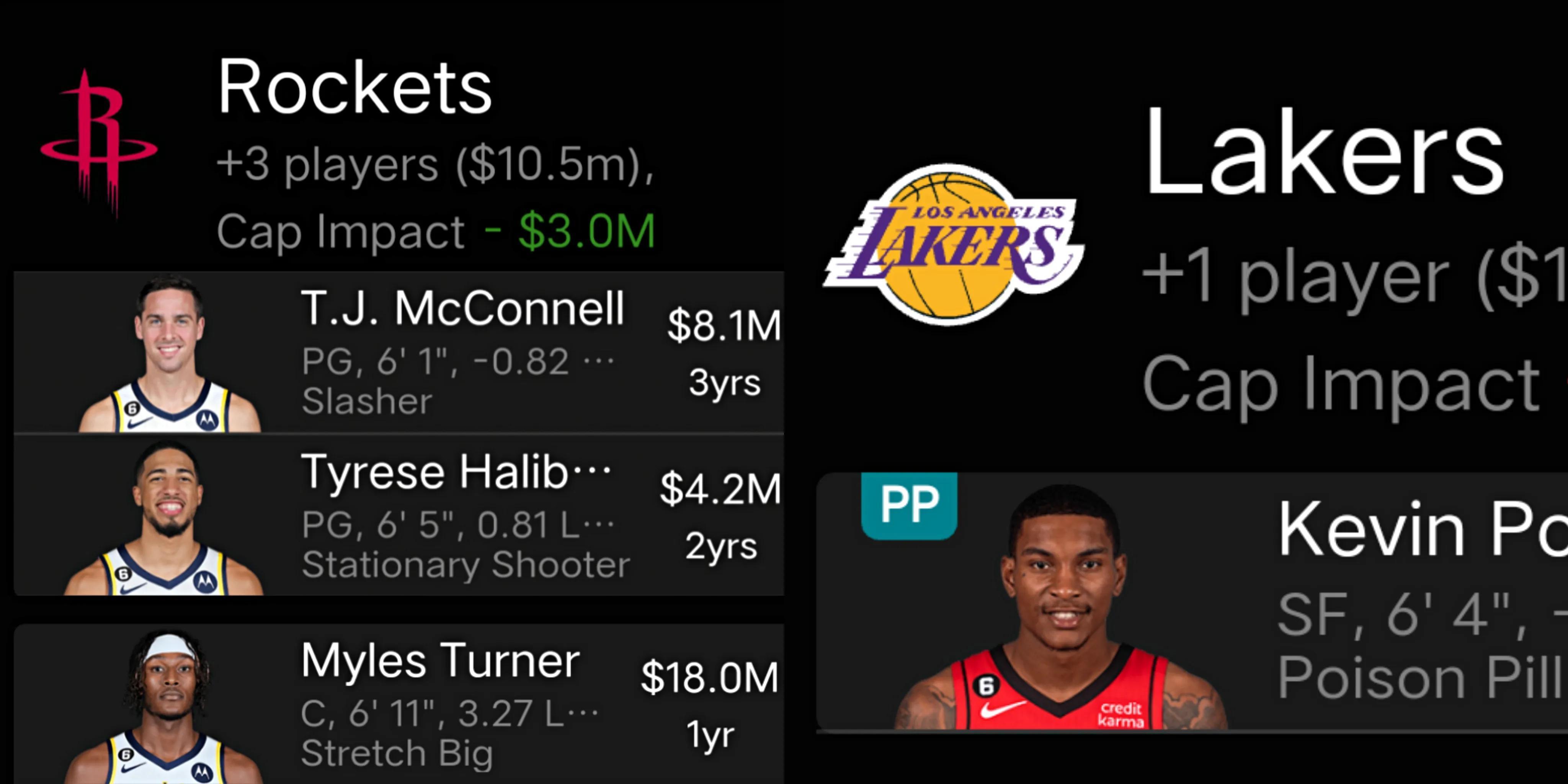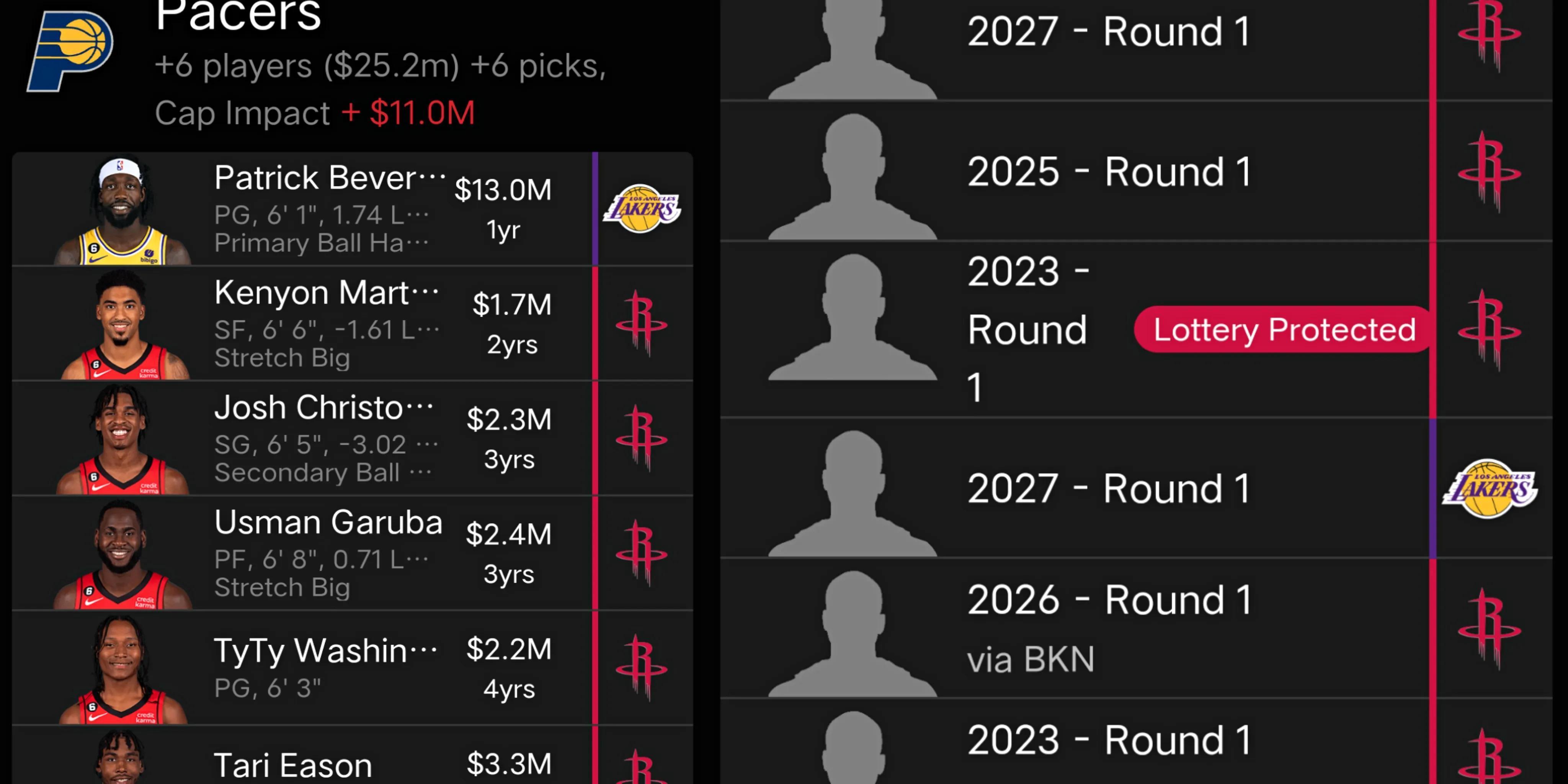 得到:貝弗利、小馬丁、託弗、加魯巴、泰泰、伊森、湖人2027年首輪籤、火箭送出的5個首輪籤