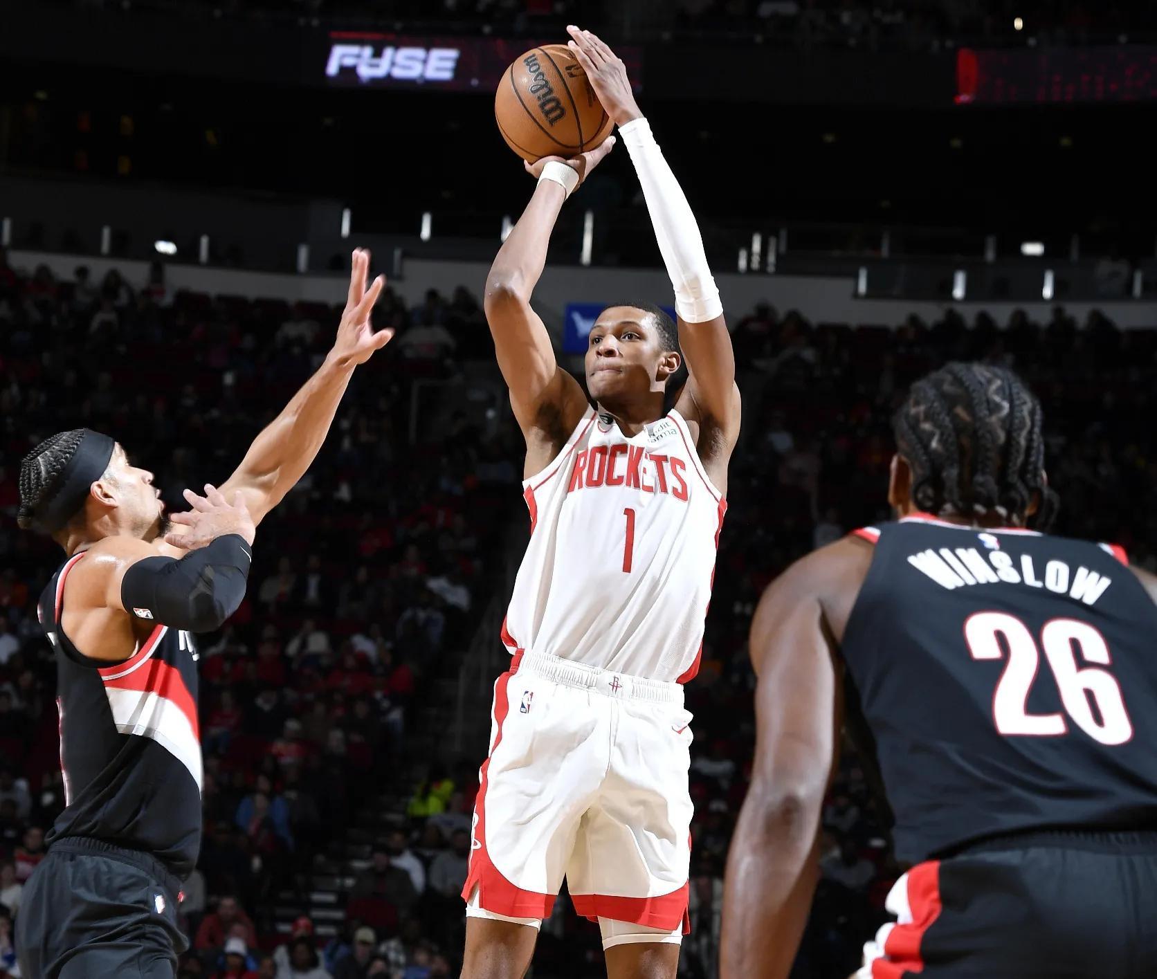 火箭主場不敵開拓者,本場比賽火箭一如既往的防守三分球不利,開拓者是聯盟比較擅長投射三分球的球隊,全隊三分命中率達到百分之38.8,能排在聯盟第②位。