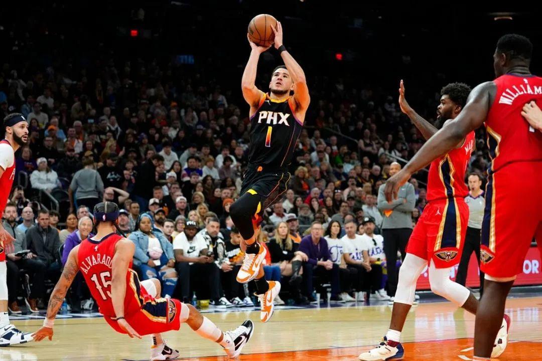 對布克來說,他個人最近一段時間打得並不順暢。與鵜鶘這一戰開始前,他在最近的5場比賽裏,場均只有15.2分入賬,運動戰命中率也才32.9%。他還一度因爲大腿痠痛,而缺席過兩場比賽。前一場贏下快船的比賽裏,布克全場22次出手,僅僅投進了6個球,個人只有14分入賬。