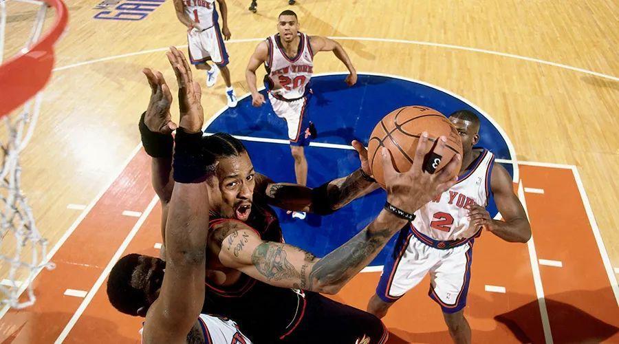 但艾弗森在籃球場上的表現,還是帶有明顯的“橄欖球印記”,其韌性最直接的體現,就是對沖擊籃筐的旺盛慾望,儘管他個子矮小,而禁區之內長人如林。