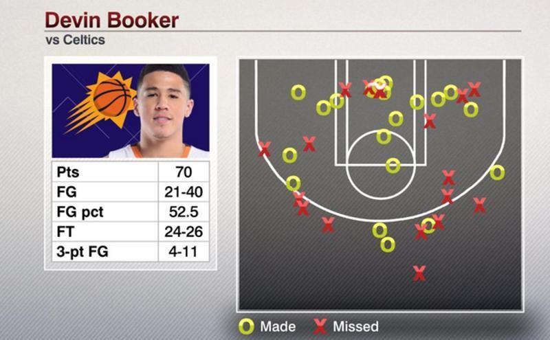 在NBA中有個不成文的潛規則,那就是當比賽快結束時,如果兩隊分差太大的話,那麼默認換上替補球員打完最後的垃圾時間。不過,在16-17賽季一場太陽對陣凱爾特人的比賽中,太陽在最後1分鐘還落後十多分的情況下,故意犯規送凱爾特人球員上罰球線,讓布克獲得投籃得分的機會,最終在全隊的幫助下,布克砍下70分的高分,不僅成爲現役得分最高的球星,也成爲NBA歷史最年輕的70分先生。