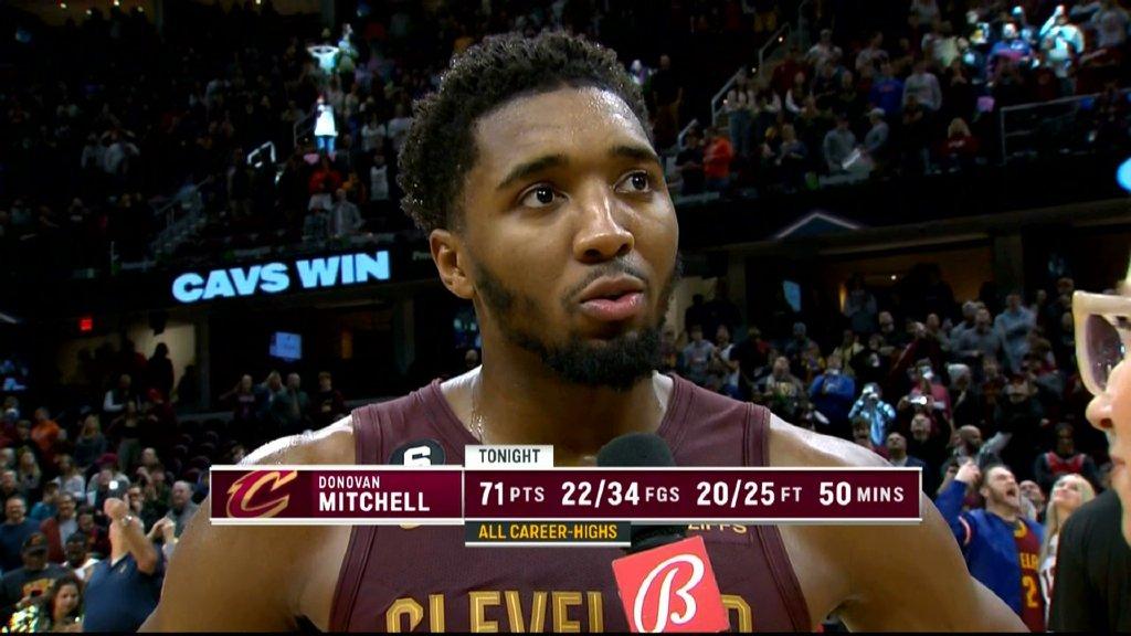 首先,米切爾34投22中,三分15中7,罰球25中20,狂轟71分!帶領騎士在加時賽上擊敗公牛。