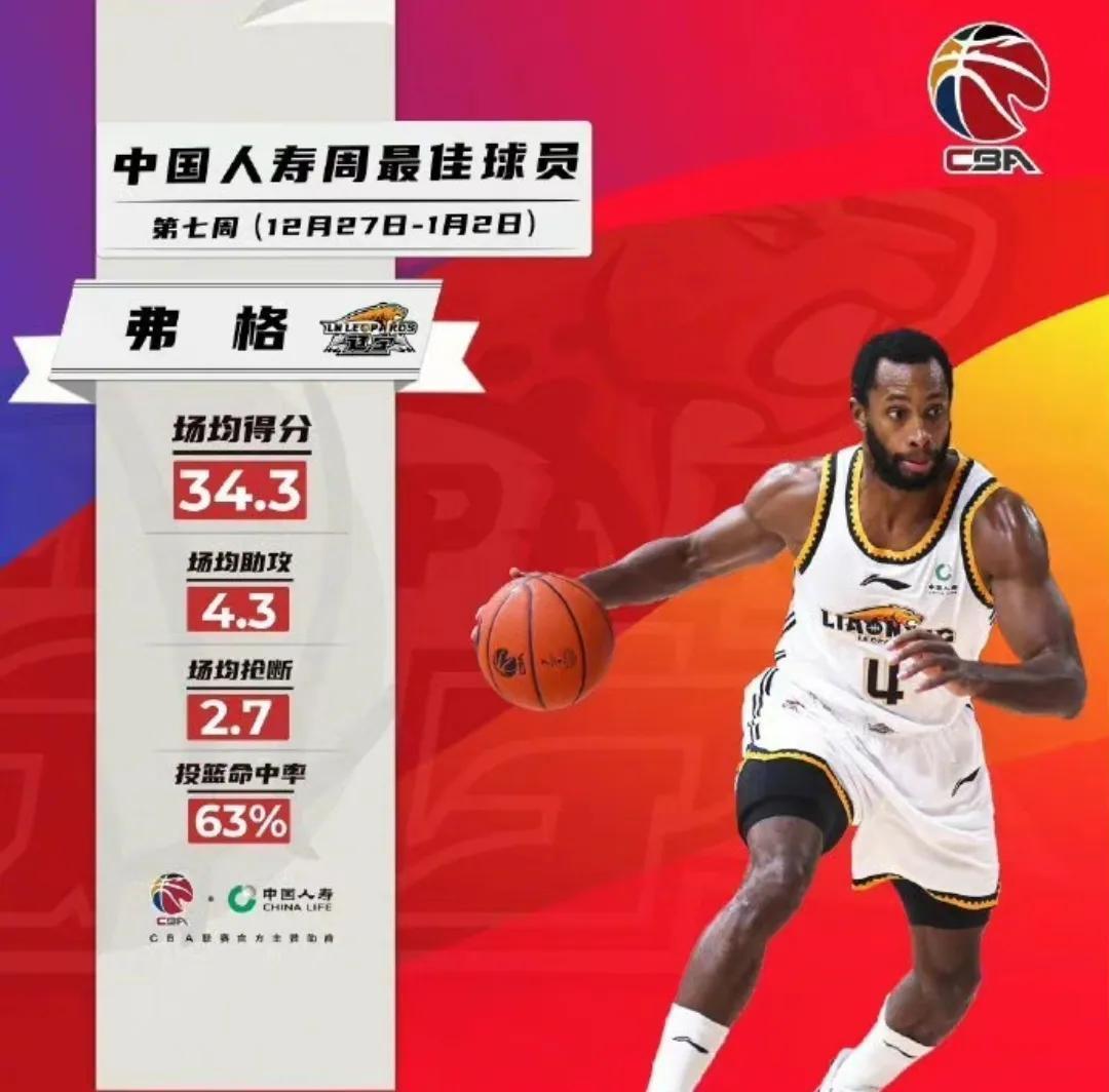 在帶隊取勝之後,剛剛CBA官方又爲弗格送來了一項特殊嘉獎,依照上週全聯盟所有球員的表現,弗格和廣州隊的陳盈駿一起,成功當選爲上週的周最佳球員,這星期弗格帶領遼寧男籃取得了兩勝一負的戰績,除了與北京首鋼那場有爭議的失利,面對聯盟積分榜第一的浙江隊,以及同爲東北球隊的吉林,遼寧男籃最終都成功取勝,而這兩場比賽,弗格分別貢獻了41分4籃板4助攻和38分5籃板9助攻,特別是與浙江隊一戰,抱着復仇心理的遼寧將士,在這場比賽頂住了浙江隊員的輪番轟炸,每到關鍵時刻,弗格總能挺身而出,帶領球隊打出了一場含金量極高的比賽。