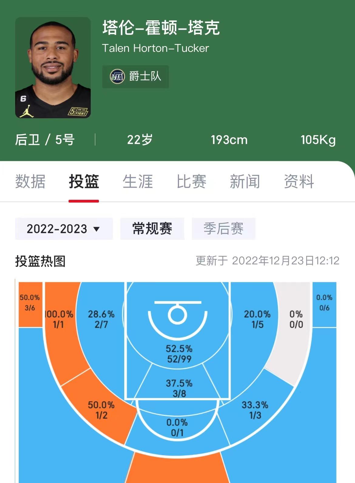 曾經被湖人捧成掌中寶的霍頓-塔克,在爵士已經完全打不上球了。