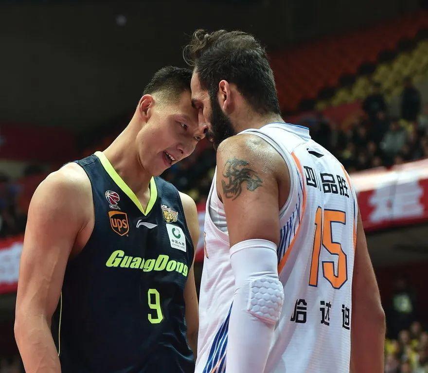 國際戰場的硝煙從國家隊持續到了CBA,哈達迪剛加盟CBA時,每逢遇到廣東,他所在的球隊和廣東男籃都充滿了火藥味。其中最經典的一場當屬2017年CBA季後賽首輪,廣東與四川在季後賽面對面競爭。第三場比賽,易建聯在一次防守中肘到哈達迪胸部,哈達迪不甘示弱馬上頂了上去。兩位巨人面對面,頭頂頭,不斷地朝着對手噴垃圾話。