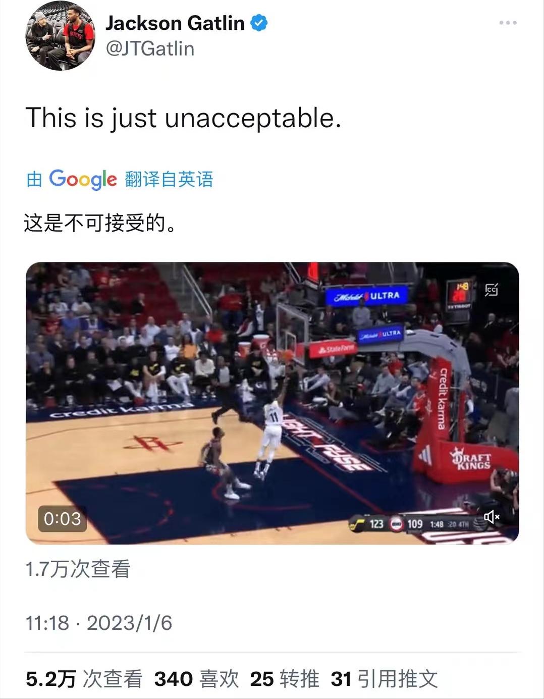 針對該動作,火箭隊記賽後忍無可忍的發帖,認爲這是不可接受的行爲。