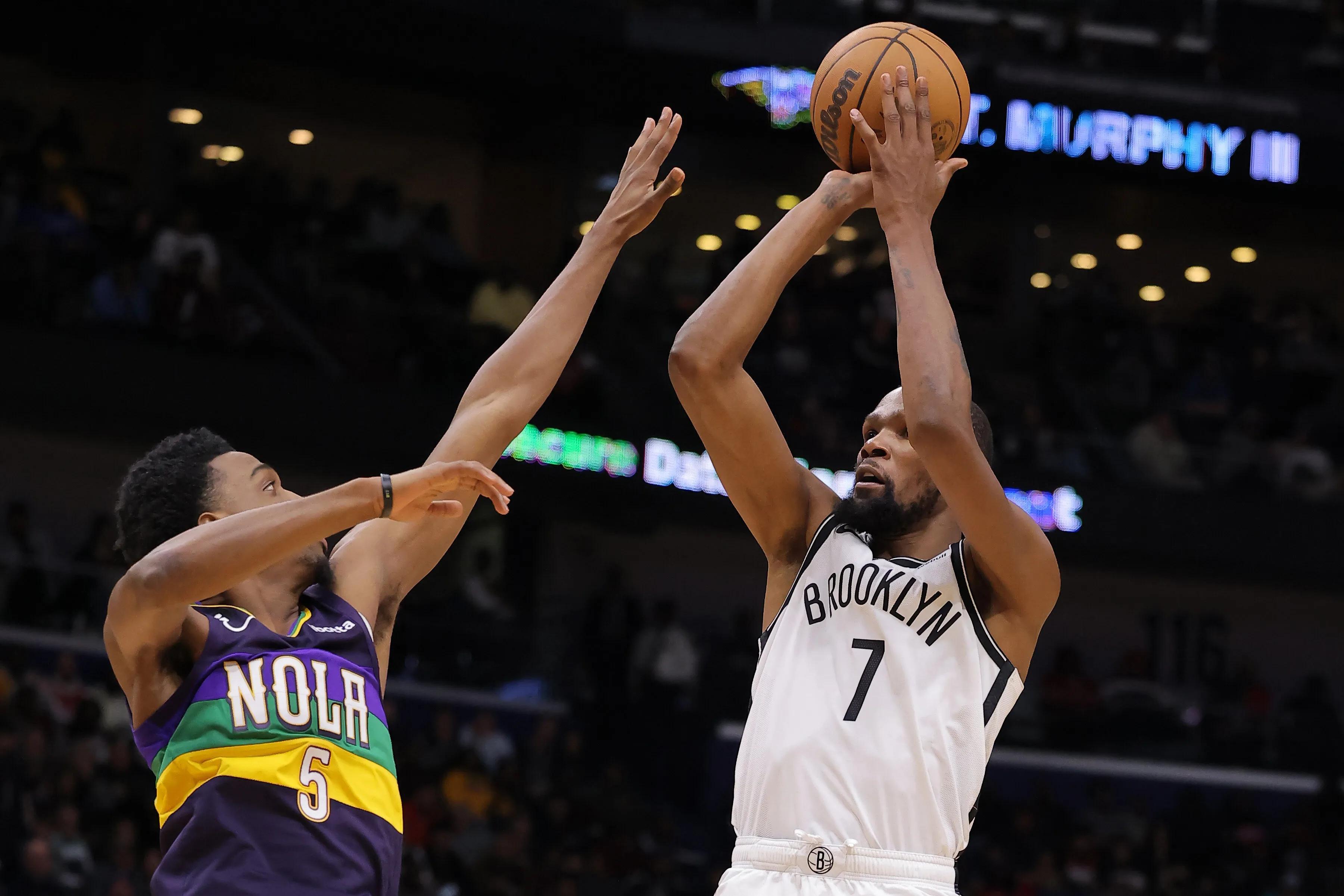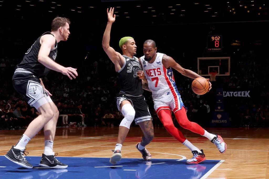 籃網隊戰績提升,目前已經高居東部前二,直追凱爾特人隊,杜蘭特和歐文表現突出,兩人場均合計可以攬下55分11籃板10助攻的數據。