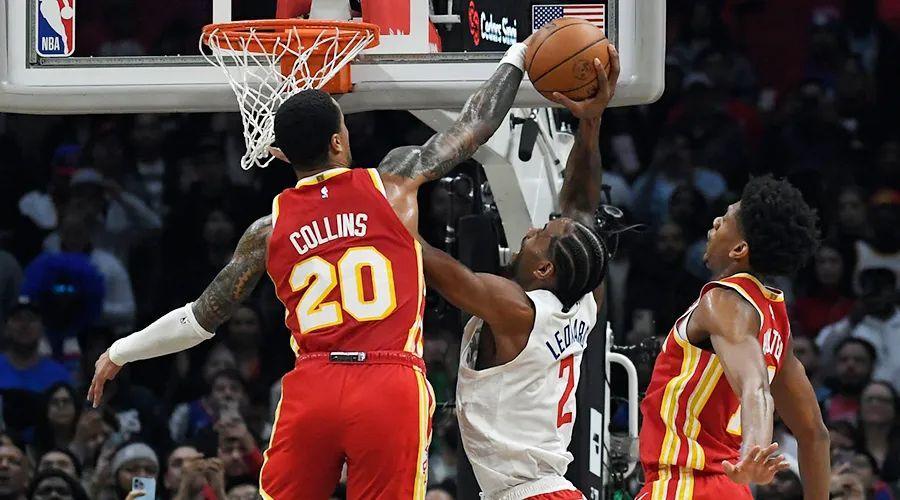 萊昂納德在弧頂嘗試和巴圖姆打擋拆點名特雷·楊,楊聰明地選擇了延誤而非換防,萊昂納德被迫和對手最好的外線防守者亨特繼續對位,在亨特的長臂干擾下後仰跳投,打鐵。