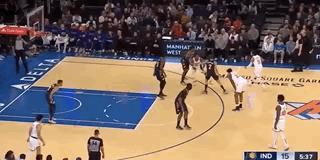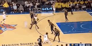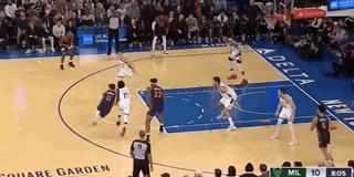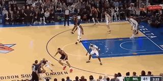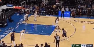 當然,面對字母哥這種歷史級防守人,布朗森還是很難打進攻堅球,但在蘭德爾的內切配合下,布朗森還是利用傳球打破了僵局。