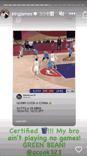 “真正的得分手!!!我兄弟可不會沒球打!手感火熱!@庫克” 北京時間2022年12月16日,勒布朗·詹姆斯在社交媒體上發了這樣一條動態,一下子讓全世界數以百萬的球迷知道了奎因·庫克在CBA聯賽單場砍下了54分。