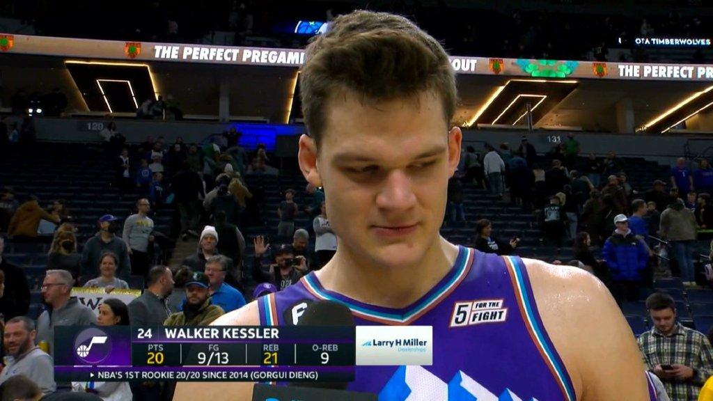 並且,他成爲爵士隊史首位單場至少得到20分20籃板的新秀球員。