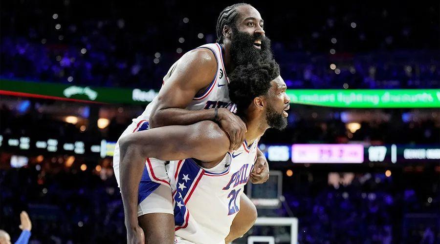 當恩比德在比賽最後關頭又一次晃飛約基奇射中鎖定勝局的後撤步三分時,富國銀行中心成爲了歡樂的海洋。恩比德一路跑到後場,向着費城父老們做了一個邁克爾·喬丹在1992年總決賽裏的招牌攤手聳肩動作。詹姆斯·哈登抓住這個Timing,一躍而起跳到了恩比德背上,還用左手揉了揉恩比德的腦袋。