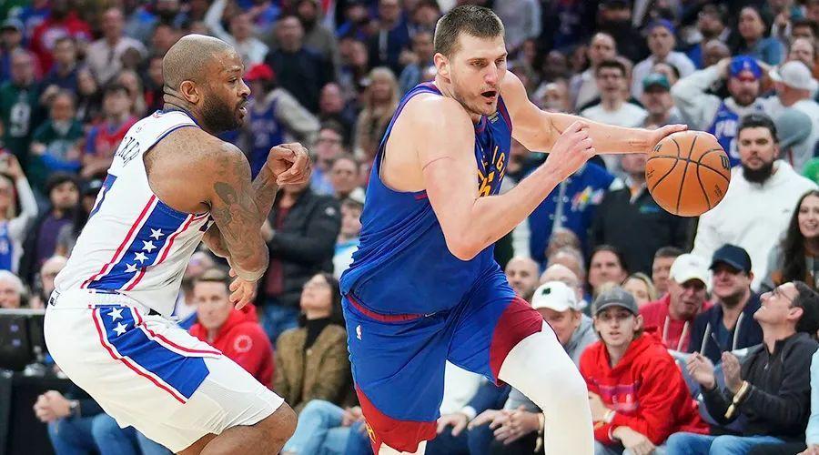 約基奇在比賽開始階段引誘恩比德犯了幾個錯誤,但隨着比賽的深入,恩比德在進攻端統治了比賽,丹佛掘金拿他沒有任何辦法。約基奇撲上來就會被他過掉,固守城池則會喫他的跳投,在第四節中段那波17比4的高潮中,恩比德連得9分——在約基奇面前連中四球,包括一個迫使邁克爾·馬龍叫暫停的後撤步三分。