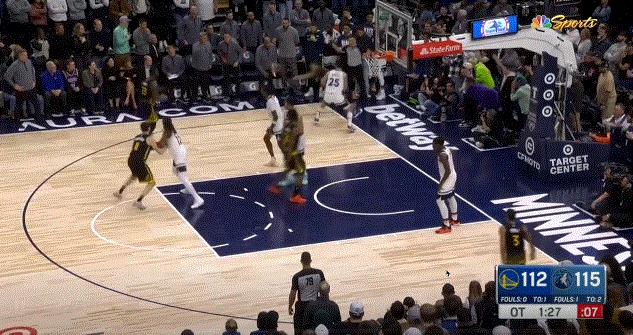 森林狼在比賽還剩2 分 35 秒時領先一分。勇士底線發球之後,森林狼甚至沒有進行任何的施壓。格林把球給到庫裏,而庫裏並不想持球,又把球扔了回去。此時格林和凱文·盧尼正在慢悠悠地跑向另一個半場,誰都沒有想到庫裏會回傳。出界!非受迫性失誤。