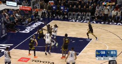 在拉塞爾一路狂飆的同時,勇士在做什麼?唐特·迪溫琴佐在24秒臨近時迫不得已扔了一個,然後庫明加非法掩護,維金斯三分不中。重溫勇士第四節的回合,這是幾乎所有糟糕的進攻。在這決定性的11分鐘裏,他們得到17分,五記三分全失,出現6次失誤,被拖進加時賽。