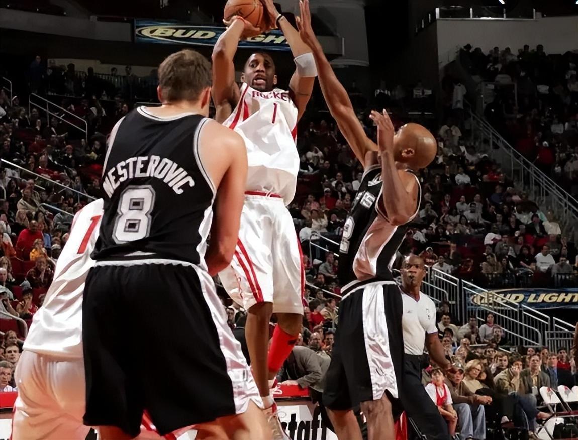 04-05賽季12月10日的常規賽,火箭對陣馬刺,這是屬於火箭球迷的狂歡,提前退場的球迷錯過了史上最偉大的逆轉表演,當時距離全場比賽結束僅剩下44秒,馬刺全隊已經準備好迎接比賽勝利,但是他們沒有注意到麥迪堅毅的眼神,麥迪先是在外線拔中三分,隨後頂着防守再次幹拔完成3+1,此時防守球員已經意識到不能在放任麥迪投進三分,開始全場緊逼,在比賽還剩16.2秒時,麥迪再次三分命中,此時分差僅差兩分,最後時刻馬刺出現嚴重失誤被搶斷,麥迪接到傳球縱觀全場,沒有選中穩定的兩分,而是選擇決勝三分,最終球再次打進,麥迪罕見揮臂慶祝,這一場逆轉被載入了史冊。
