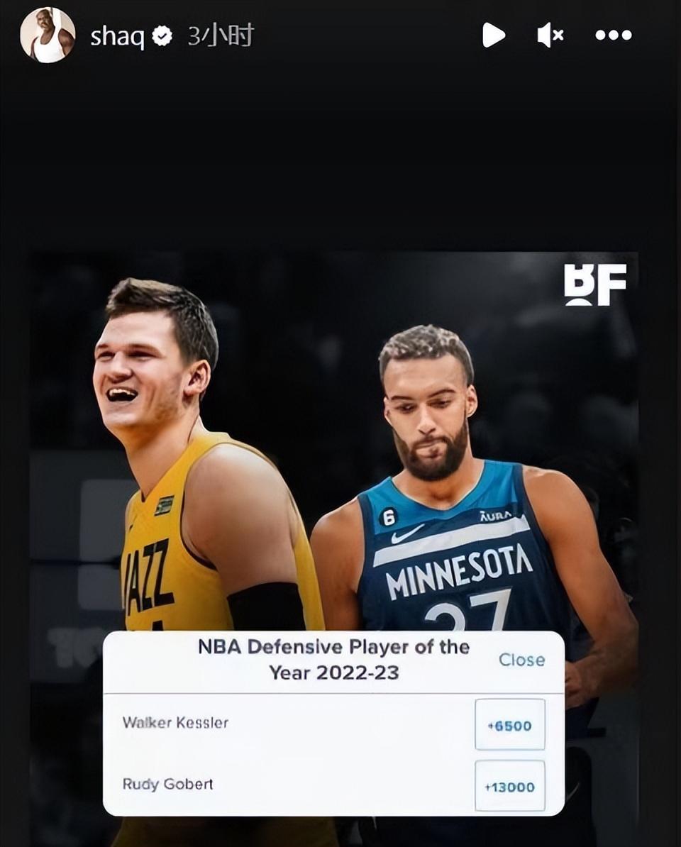 奧尼爾此前曾在社交媒體上曬出凱斯勒與戈貝爾本賽季DPOY的賠率對比,前者比“法國鐵塔”更有機會榮膺這一獎項。