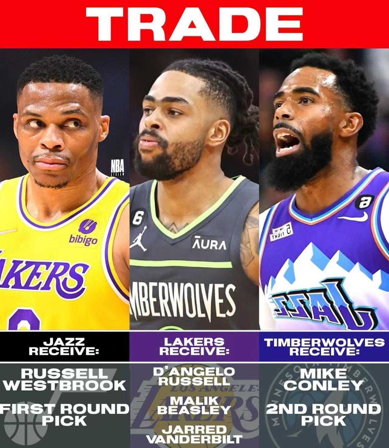 爵士得到威少,托斯卡諾-安德森,達米安-瓊斯,一個來自湖人的首輪選秀權。