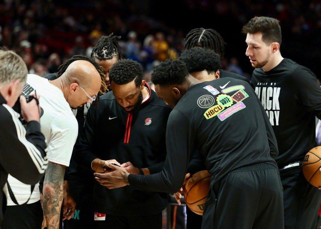 本賽季爲開拓者效力的哈特,突然得知被交易至尼克斯,他的隊友們圍在一起查看信息,哈學友與隊友擁抱後,便離開了球場。
