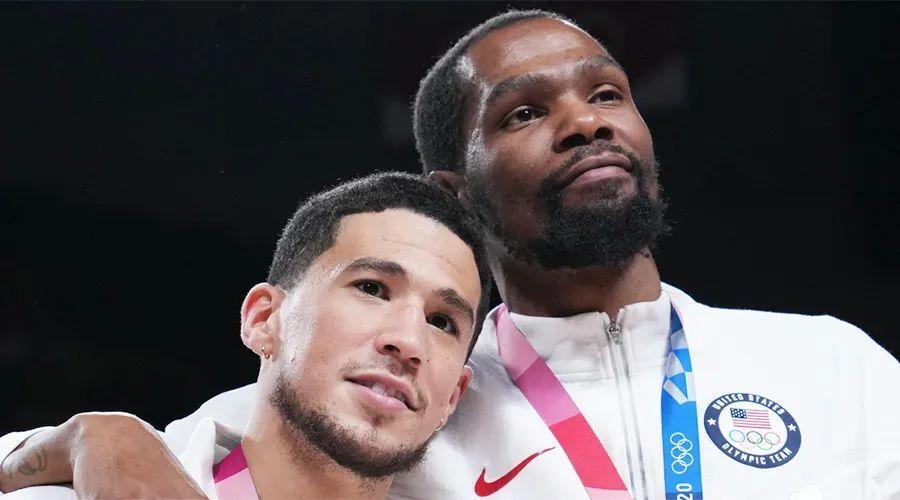 杜蘭特和布克有着良好的私交,這兩人在2021年東京奧運會上彼此賞識。在長達三週的訓練和比賽時間裏,美國男籃都執行着嚴厲的防新冠措施,這讓球員們一直待在一起,也讓杜蘭特和布克這兩位同樣癡迷於籃球的明星意識到了彼此。本來這兩個人都可以拒絕徵召的,杜蘭特剛剛打完了他從跟腱撕裂中恢復的第一個賽季,大多數人會在這種時候選擇休息,而布克剛剛在總決賽中遭遇了殘酷的失利,他和太陽隊曾在總決賽中以2比0領先,而最後被雄鹿連下四場完成翻盤。