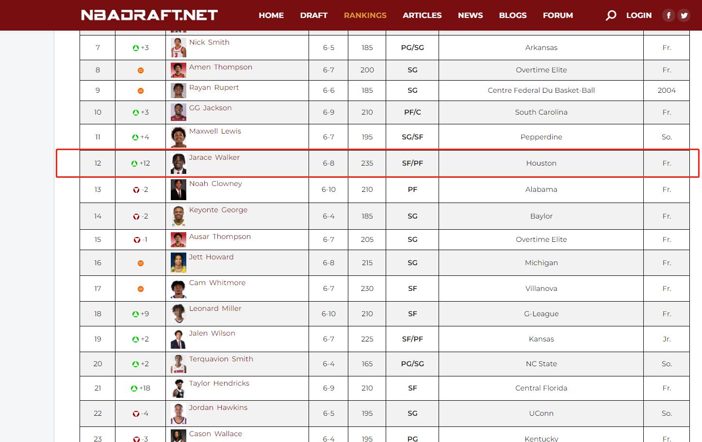 而最新一期的榜單當中,Jarace Walker卻已經殺進樂透區域,暴漲超過12順位。