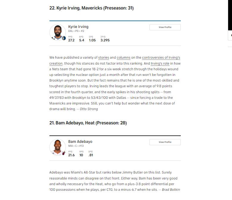 場均27.2分正值巔峯的超級後衛只排在22位,甚至不如哈利伯頓,這是讓人難理解的。