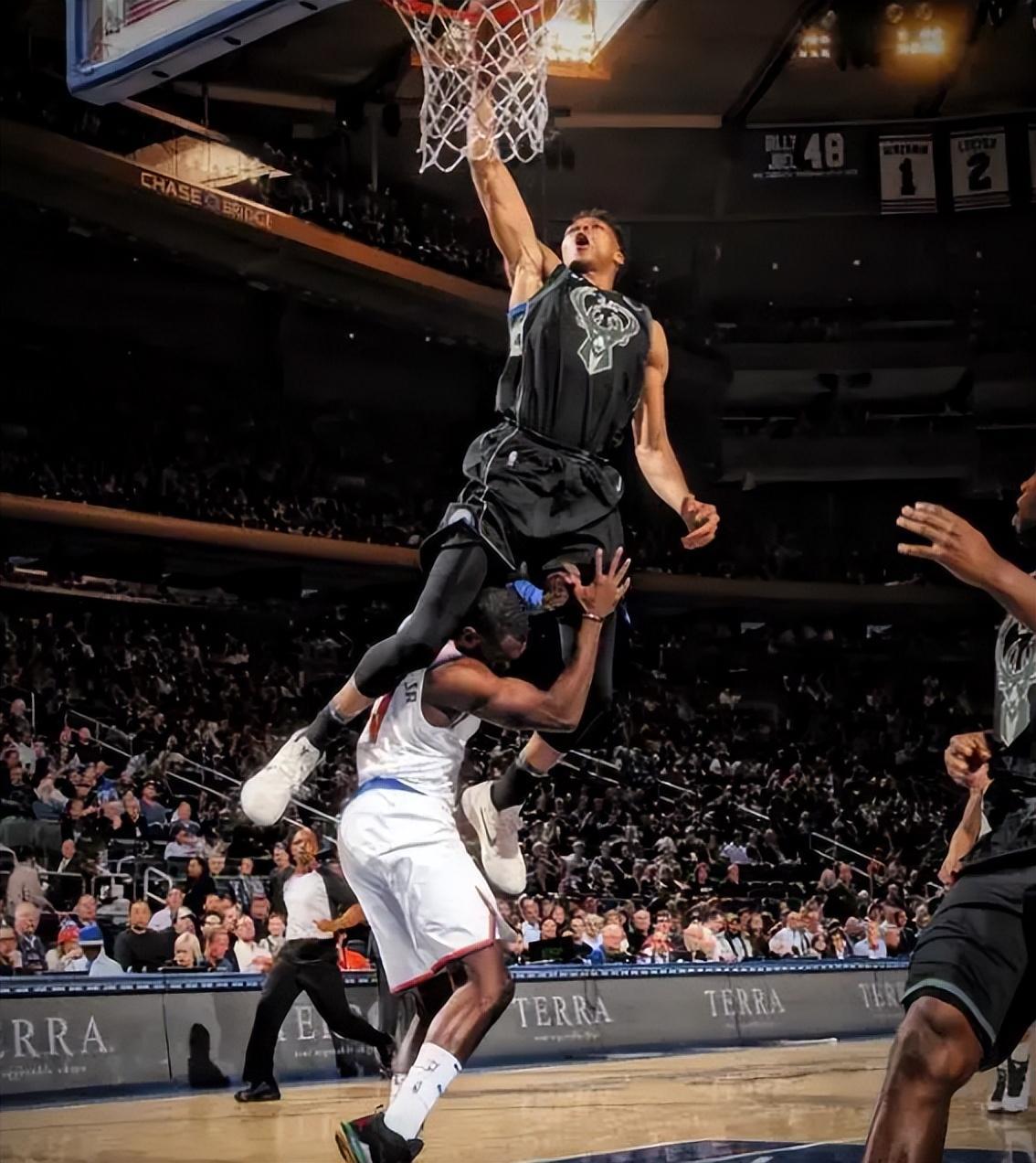 在NBA中球迷們最喜歡看的名場面,無疑就是各種暴力的隔扣了吧!但是,對於字母哥的身體素質來說,隔扣顯然已經不過癮了。之前在一場對陣尼克斯的比賽中,字母哥竟然直接飛躍了哈達威完成暴力扣籃,讓對手嚐了什麼叫做胯下之辱。而要知道,儘管哈達威身高在NBA不算突出,但是也有着1米98的身高,可見字母哥的彈跳有多麼恐怖。