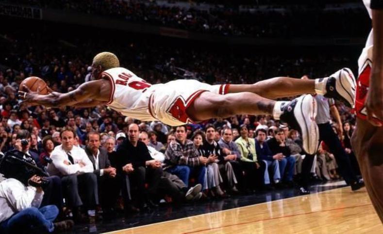 說到NBA的拼命三郎,那麼球迷們首先想到的無疑就是羅德曼的名字了。而羅德曼生涯的名場面,無疑就是當年一場比賽中,爲了救球,不惜將自己身體完全飛出去,平行地板180°救這顆球了。這張照片可以說是羅德曼職業生涯的縮影,頑強拼搏、永不放棄。