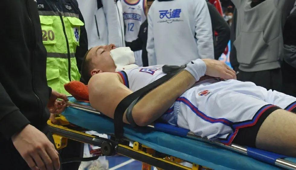 隨後被救護車緊急送往醫院。裁判回放之後,吹罰廣夏隊的胡金秋違體犯規。