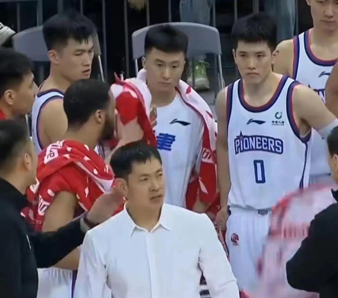 不久前執掌起天津男籃教鞭的張慶鵬,沉思、忍痛、淚目,握着拳頭看向了賽場。