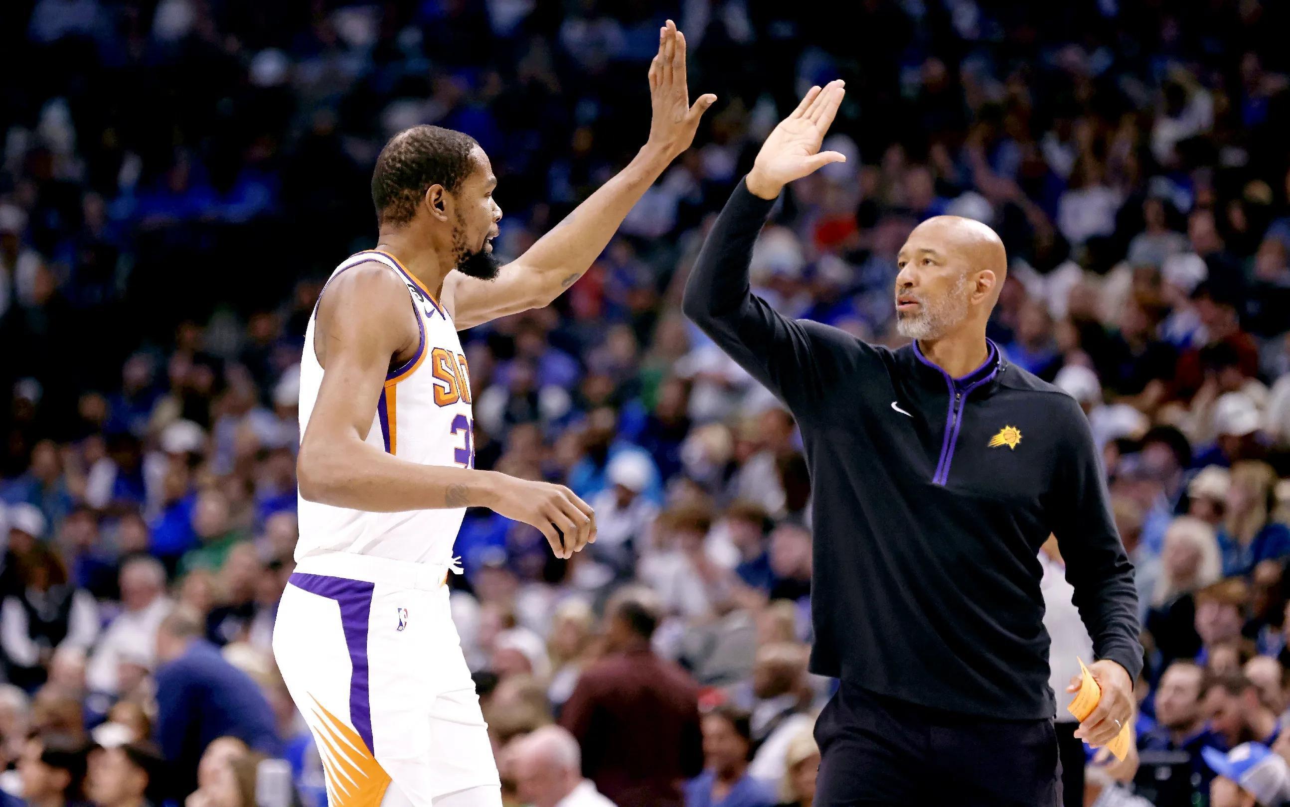 太陽送出了年邁的老將控衛保羅,得到歐文,組成了杜蘭特+歐文+布克+艾頓的主力陣容,繼續升級陣容保持爭冠的實力。