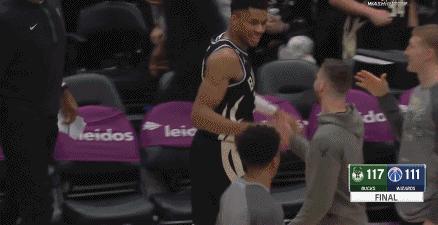 說回字母哥,不管他最後那一下是故意要刷個籃板還是爲了控制住球,他都很想拿到這個三雙。在前兩個回合,字母哥想要拿一個三雙的意圖就已經表現得相當明顯。第四節比賽還剩下最後30秒時,科裏·基斯珀特在底角投大空位三分,字母哥早就已經站在籃下卡位,等着基斯珀特投籃不中後收下籃板。可惜,未能如願。所以,我其實更願意相信字母哥最後那一下本來就是想達成一個三雙。