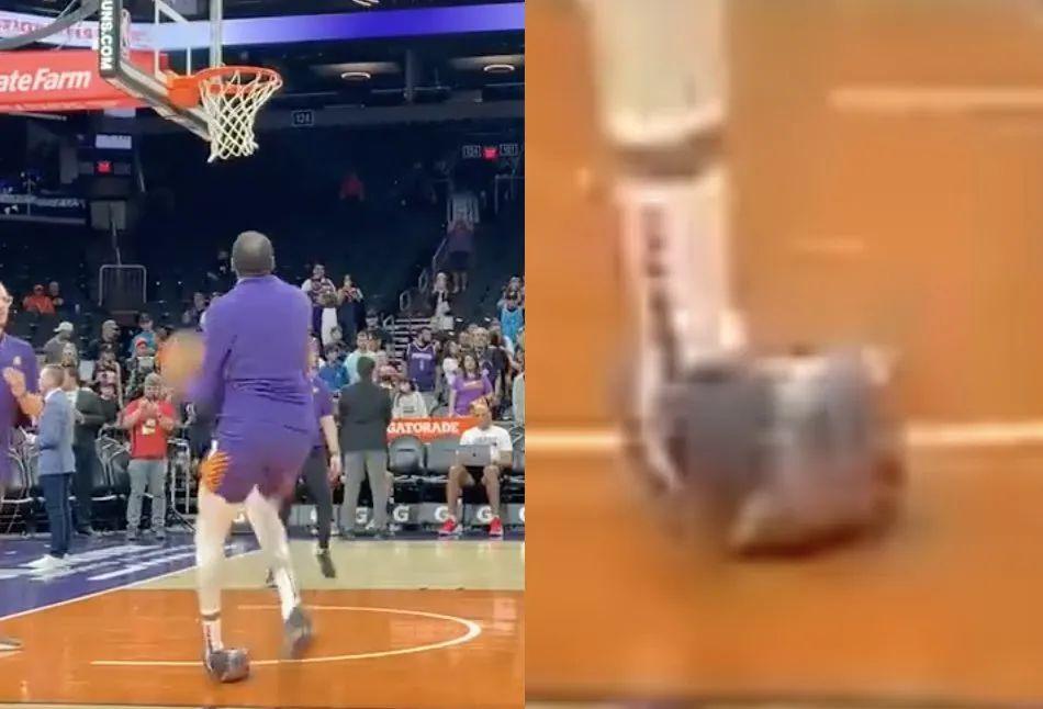過了一會,太陽隊向外界宣佈杜蘭特退出比賽。據太陽跟隊記者的說法,杜蘭特已經穿上保護靴。